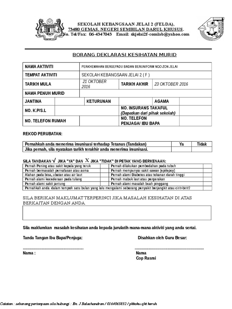 Borang rujukan murid sekolah dalam hospital muat turun pelbagai. Borang deklarasi kesihatan pelajar uitm samarahan. Borang d t v g mei2012. (a) perlu mengisi borang deklarasi kesihatan secara online semasa penerimaan tawaran. (c) anda perlu menjalani pemeriksaan kesihatan sebelum mendaftar kolej di uitm.