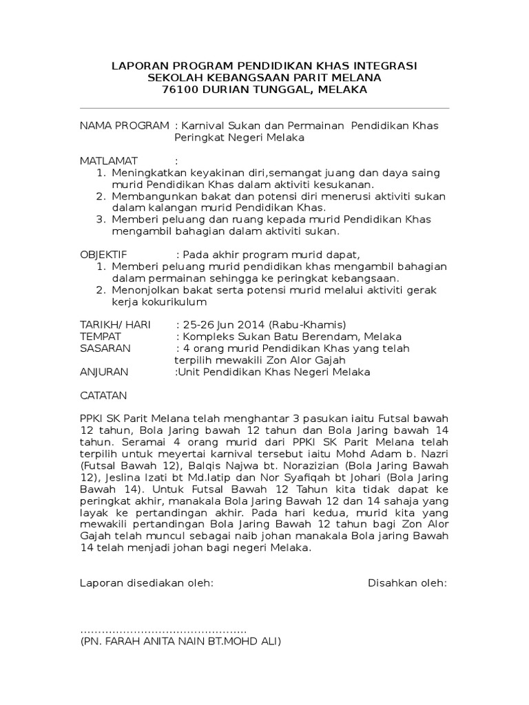 Contoh Laporan Program Pendidikan Khas Integrasi from demo.pdfslide.net Check spelling or type a new query. We did not find results for: Maybe you would like to learn more about one of these?